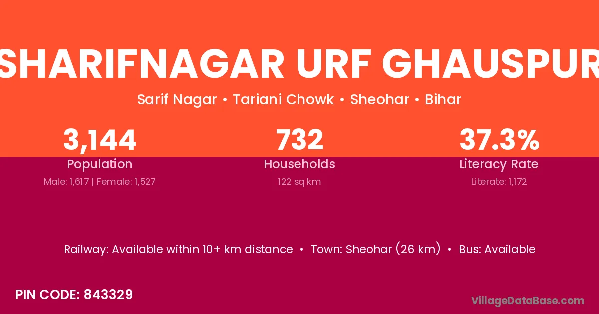 Sheohar (26 km) is the nearest town to Sharifnagar Urf Ghauspur village for major economic activities and is located approximately 26 km away.