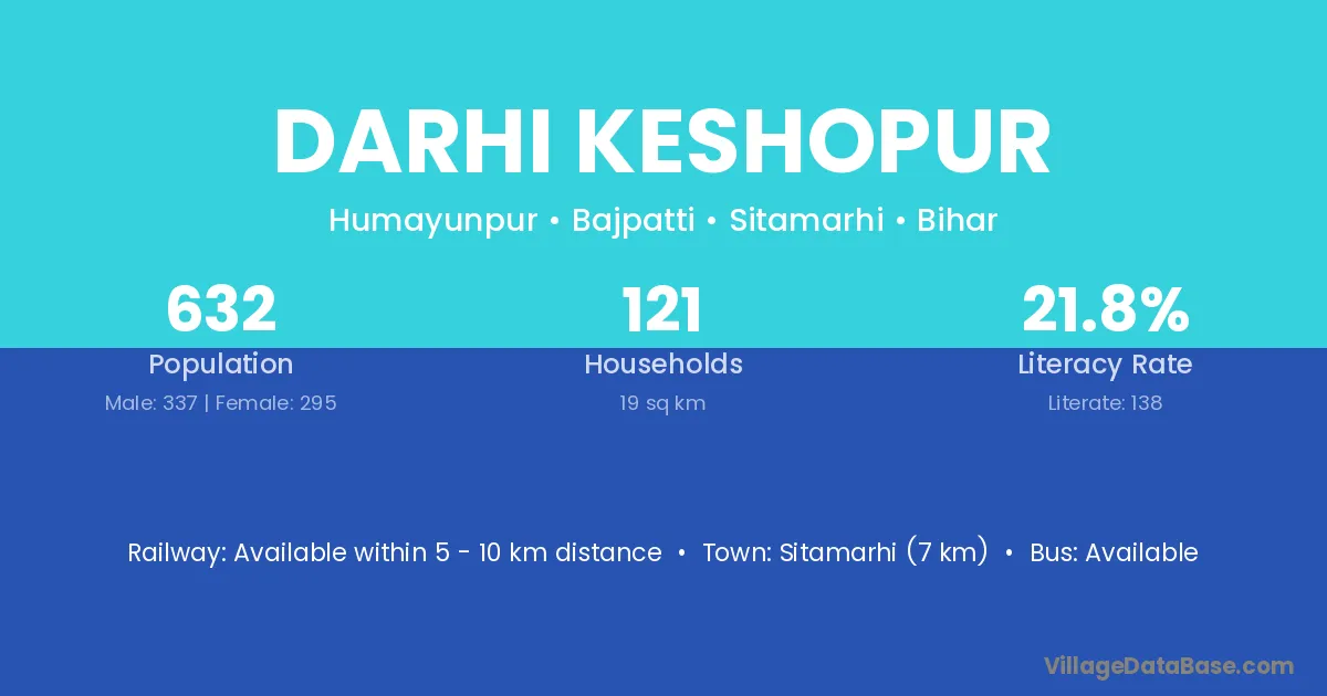 Sitamarhi (7 km) is the nearest town to Darhi Keshopur village for major economic activities and is located approximately 7 km away.