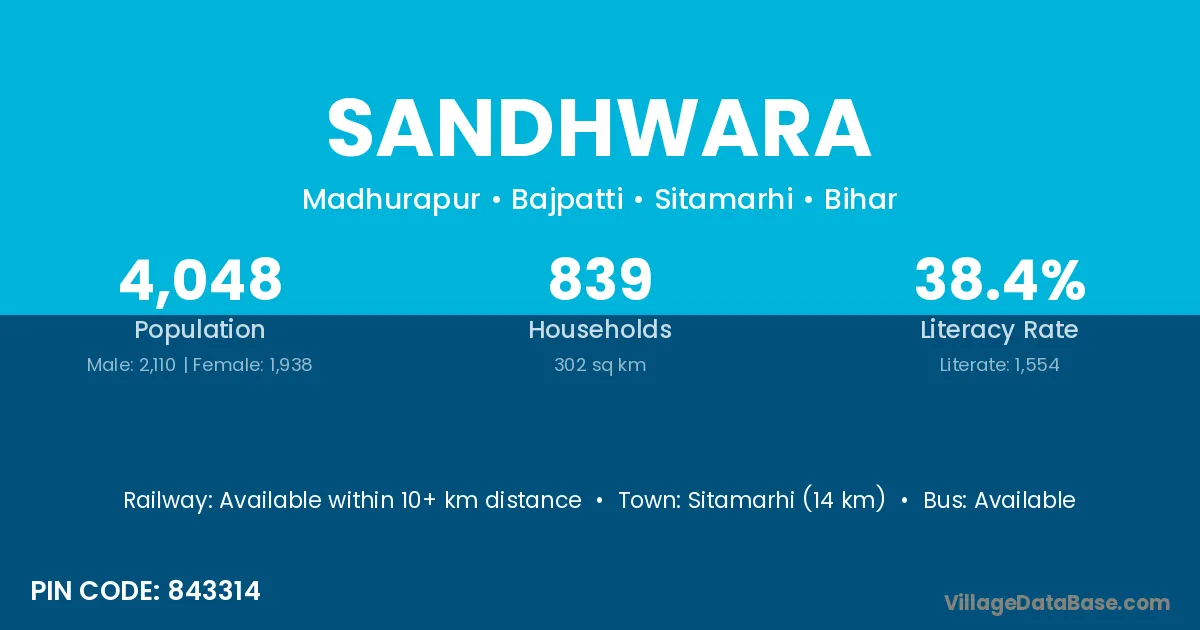 Sitamarhi (14 km) is the nearest town to Sandhwara village for major economic activities and is located approximately 14 km away.
