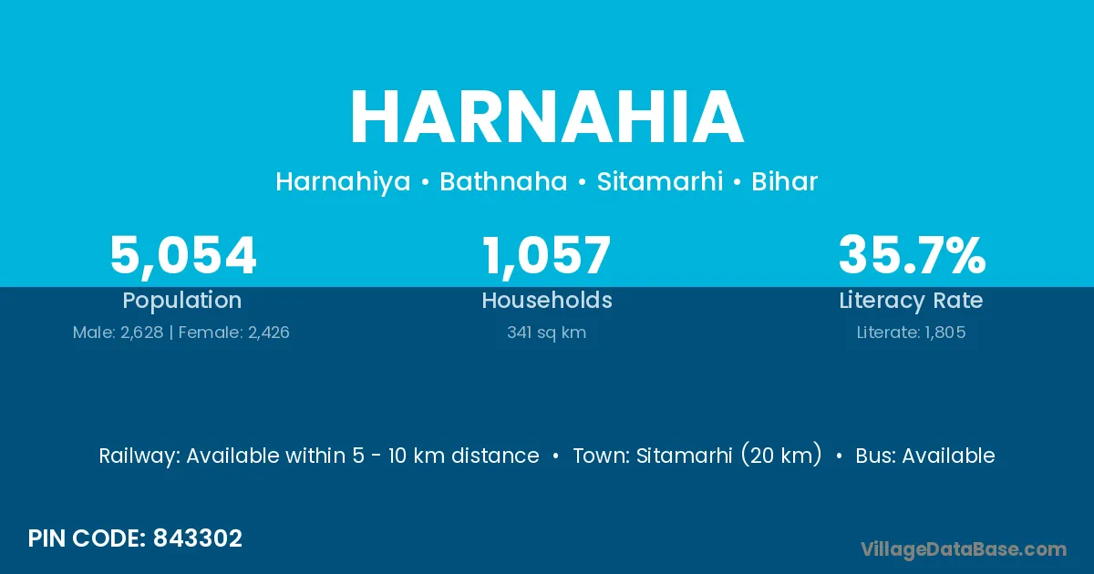 Sitamarhi (20 km) is the nearest town to Harnahia village for major economic activities and is located approximately 20 km away.