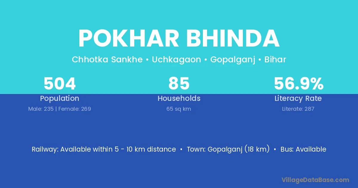 Sitamarhi (17 km) is the nearest town to Pokhar Bhinda village for major economic activities and is located approximately 17 km away.