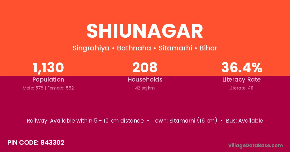 Sitamarhi (16 km) is the nearest town to Shiunagar village for major economic activities and is located approximately 16 km away.
