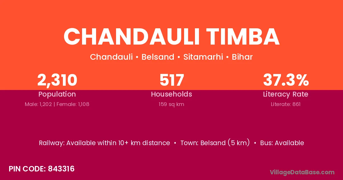 Belsand (5 km) is the nearest town to Chandauli Timba village for major economic activities and is located approximately 5 km away.