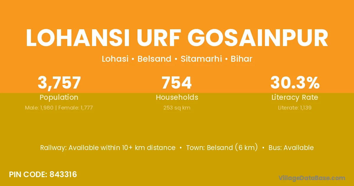 Belsand (6 km) is the nearest town to Lohansi Urf Gosainpur village for major economic activities and is located approximately 6 km away.