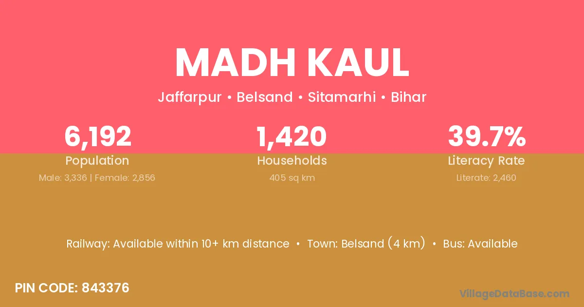 Belsand (4 km) is the nearest town to Madh Kaul village for major economic activities and is located approximately 4 km away.