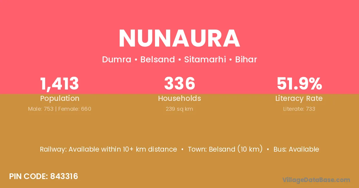 Belsand (10 km) is the nearest town to Nunaura village for major economic activities and is located approximately 10 km away.