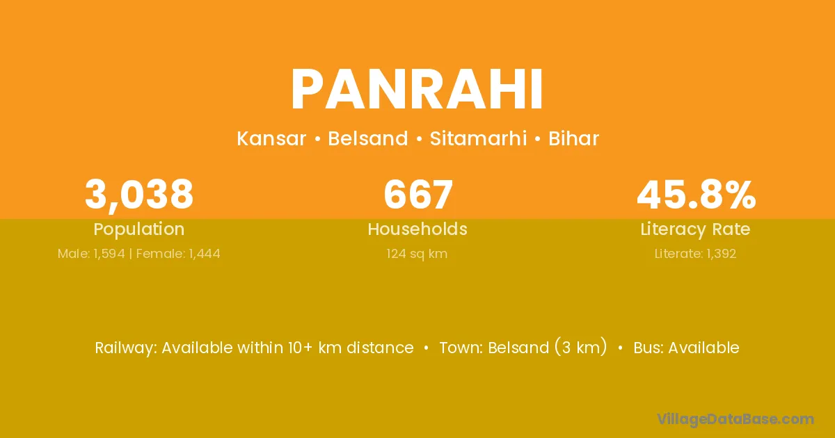 Belsand (3 km) is the nearest town to Panrahi village for major economic activities and is located approximately 3 km away.