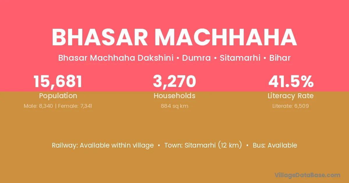 Bhasar Machhaha village has a total population of 15,681 people, of which 8,340 are males and 7,341 are females.