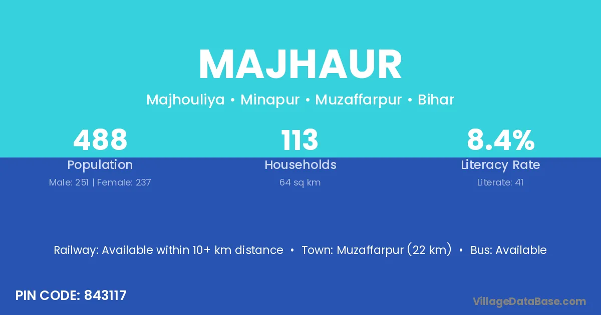 Janakpur Road (6 km) is the nearest town to Majhaur village for major economic activities and is located approximately 6 km away.