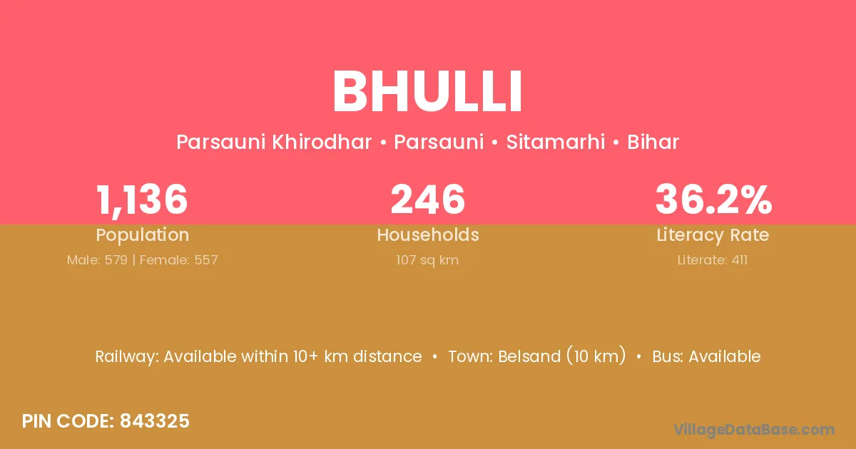 Belsand (10 km) is the nearest town to Bhulli village for major economic activities and is located approximately 10 km away.