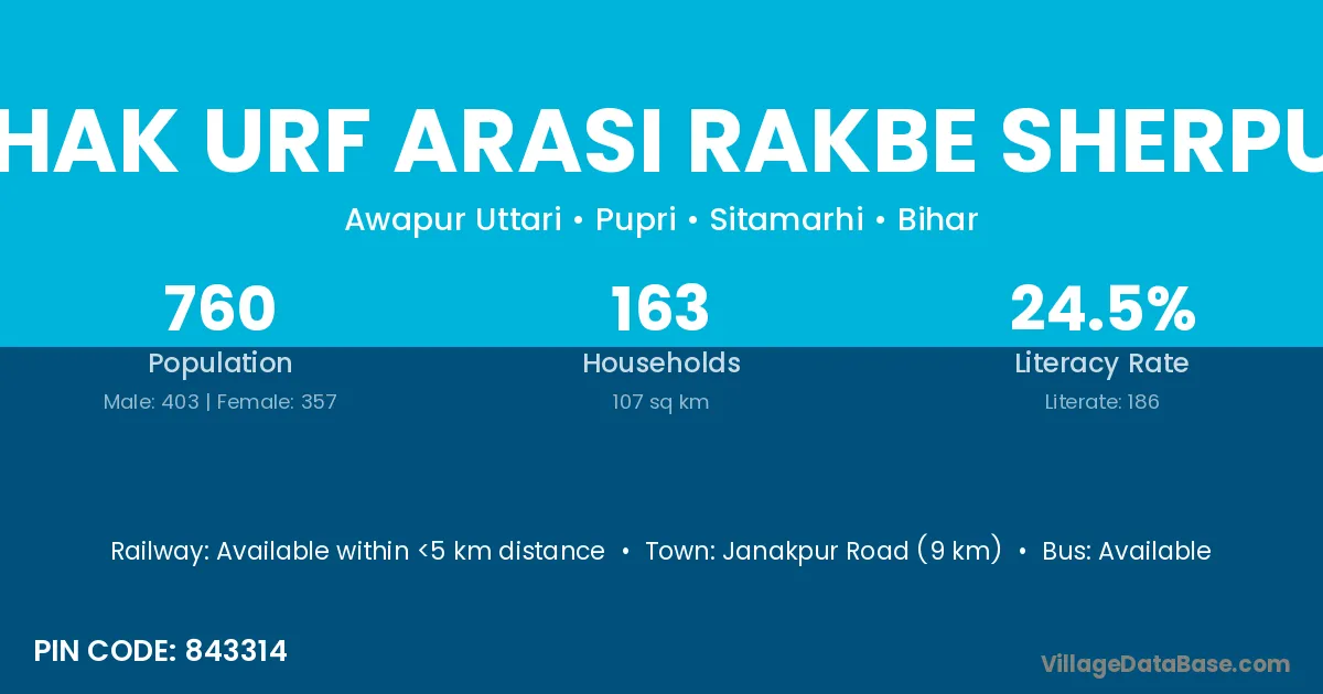 Chak Urf Arasi Rakbe Sherpur village has a total population of 760 people, of which 403 are males and 357 are females.