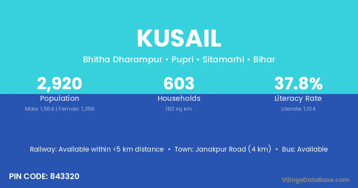 Janakpur Road (4 km) is the nearest town to Kusail village for major economic activities and is located approximately 4 km away.