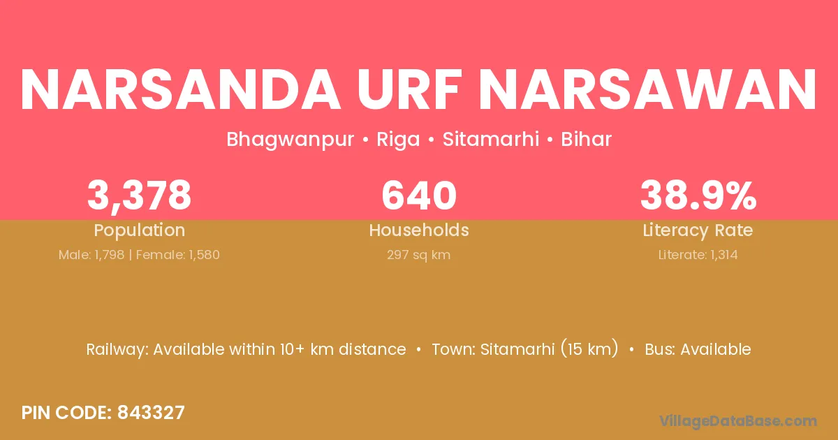 Sitamarhi (15 km) is the nearest town to Narsanda Urf Narsawan village for major economic activities and is located approximately 15 km away.