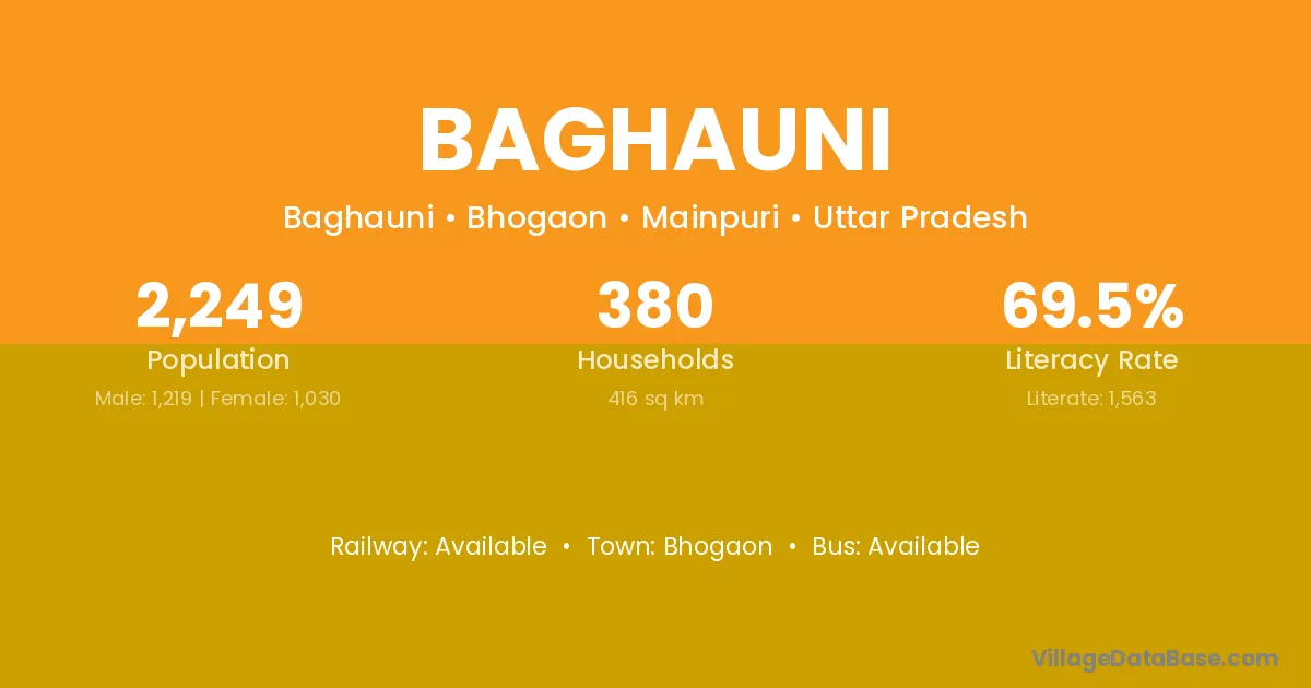Baghauni village has a total population of 2,023 people, of which 1,079 are males and 944 are females.