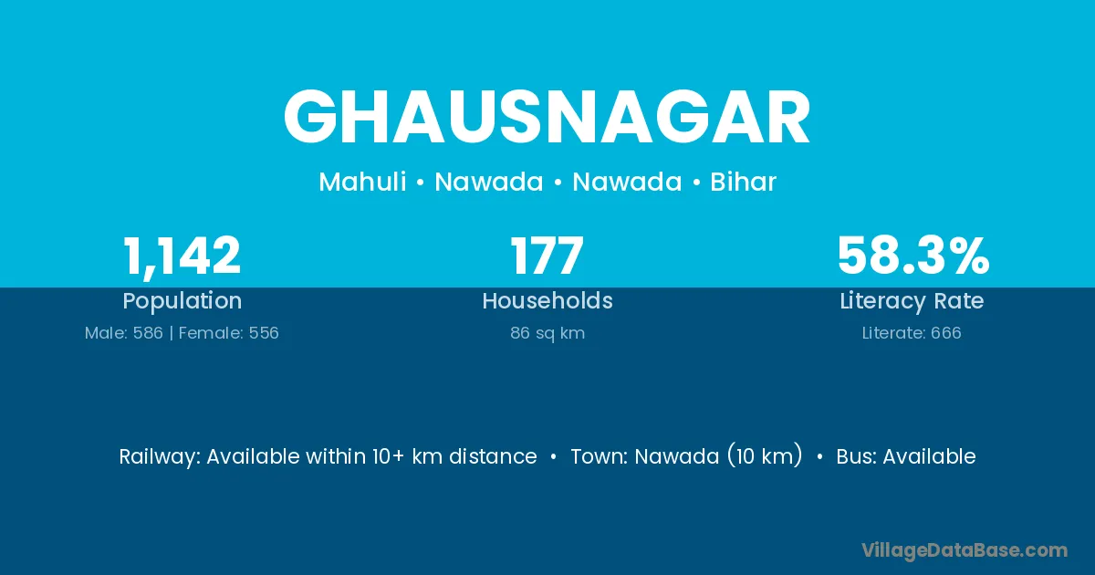 Sitamarhi (67 km) is the nearest town to Ghausnagar village for major economic activities and is located approximately 67 km away.