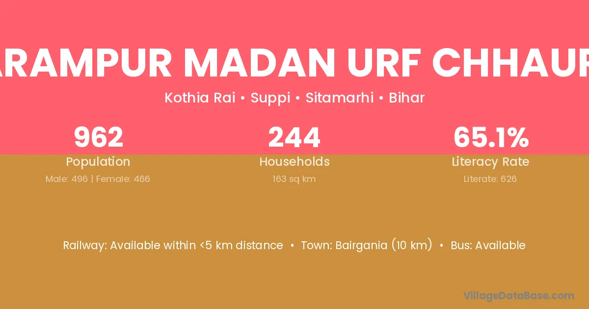 Dharampur Madan Urf Chhaurhia village has a total population of 962 people, of which 496 are males and 466 are females.