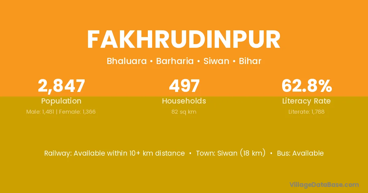 Siwan (18 km) is the nearest town to Fakhrudinpur village for major economic activities and is located approximately 18 km away.