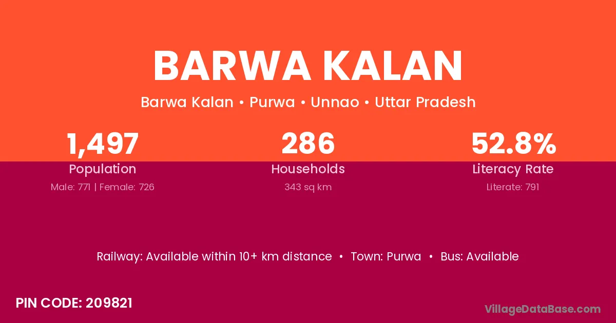 Barwa Kalan village has a total population of 2,924 people, of which 1,524 are males and 1,400 are females.