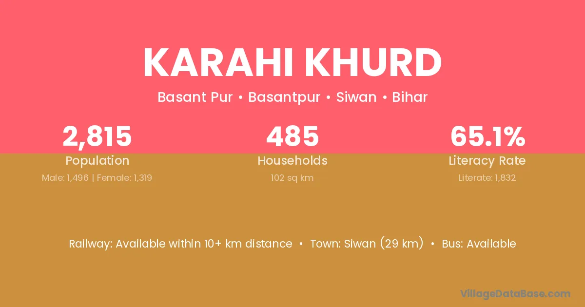 Karahi Khurd village has a total population of 2,815 people, of which 1,496 are males and 1,319 are females.