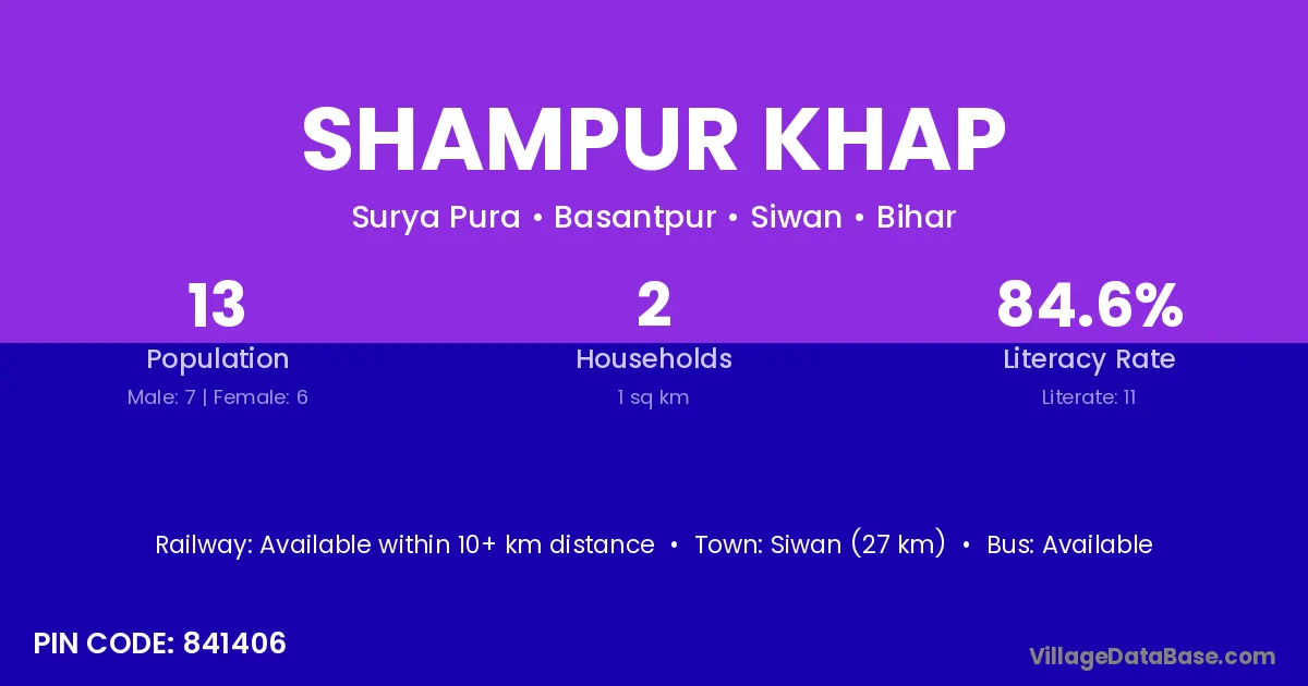 Siwan (27 km) is the nearest town to Shampur Khap village for major economic activities and is located approximately 27 km away.