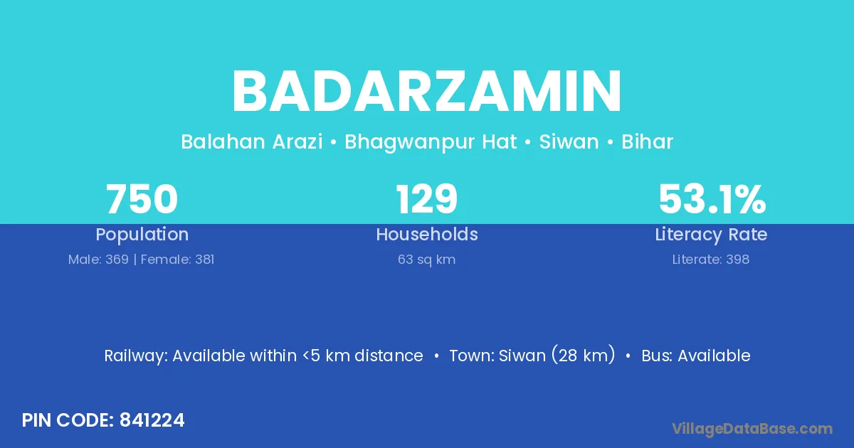 Siwan (28 km) is the nearest town to Badarzamin village for major economic activities and is located approximately 28 km away.