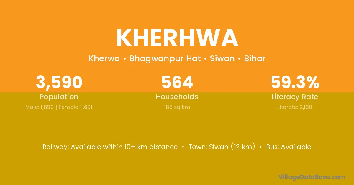 Siwan (12 km) is the nearest town to Kherhwa village for major economic activities and is located approximately 12 km away.