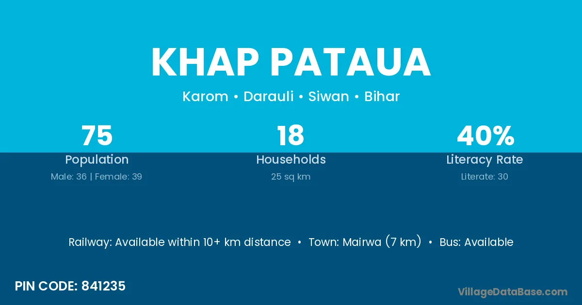 Mairwa (7 km) is the nearest town to Khap Pataua village for major economic activities and is located approximately 7 km away.
