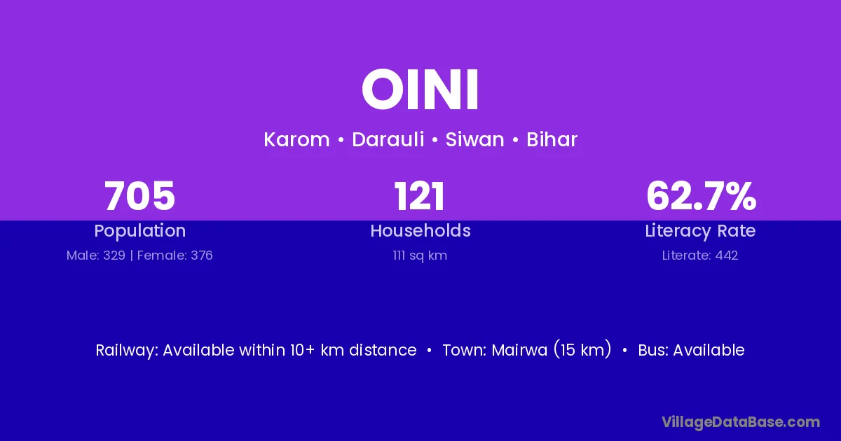 Mairwa (15 km) is the nearest town to Oini village for major economic activities and is located approximately 15 km away.