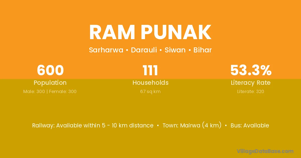 Mairwa (4 km) is the nearest town to Ram Punak village for major economic activities and is located approximately 4 km away.