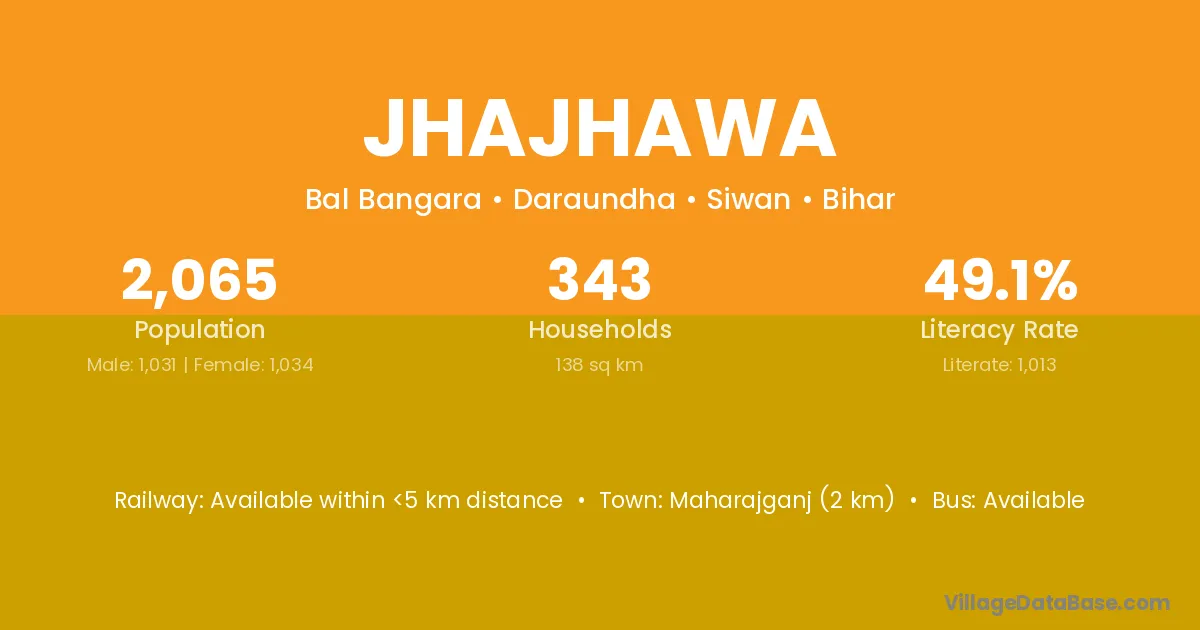 Maharajganj (2 km) is the nearest town to Jhajhawa village for major economic activities and is located approximately 2 km away.
