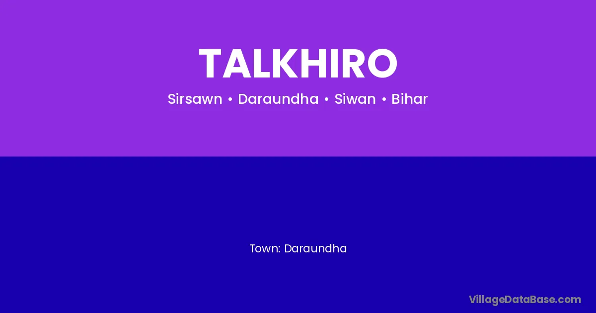 Talkhiro village is located in the Daraundha Subdivision of the Siwan district in Bihar .
