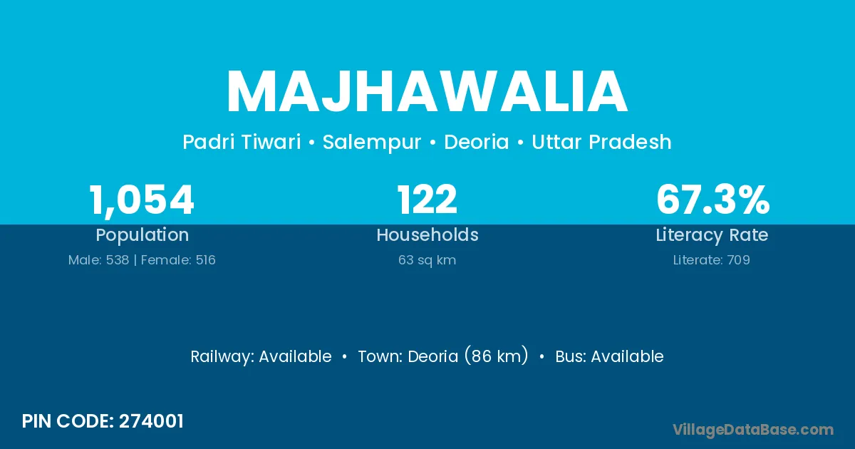 Mairwa (8 km) is the nearest town to Majhawalia village for major economic activities and is located approximately 8 km away.