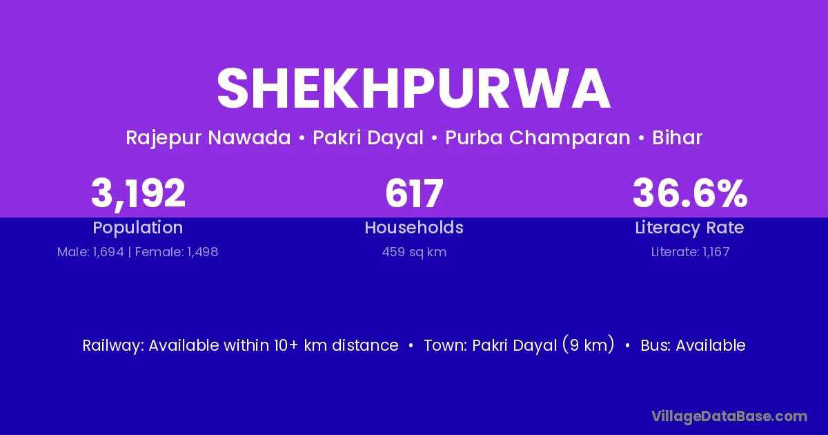 Siwan (16 km) is the nearest town to Shekhpurwa village for major economic activities and is located approximately 16 km away.
