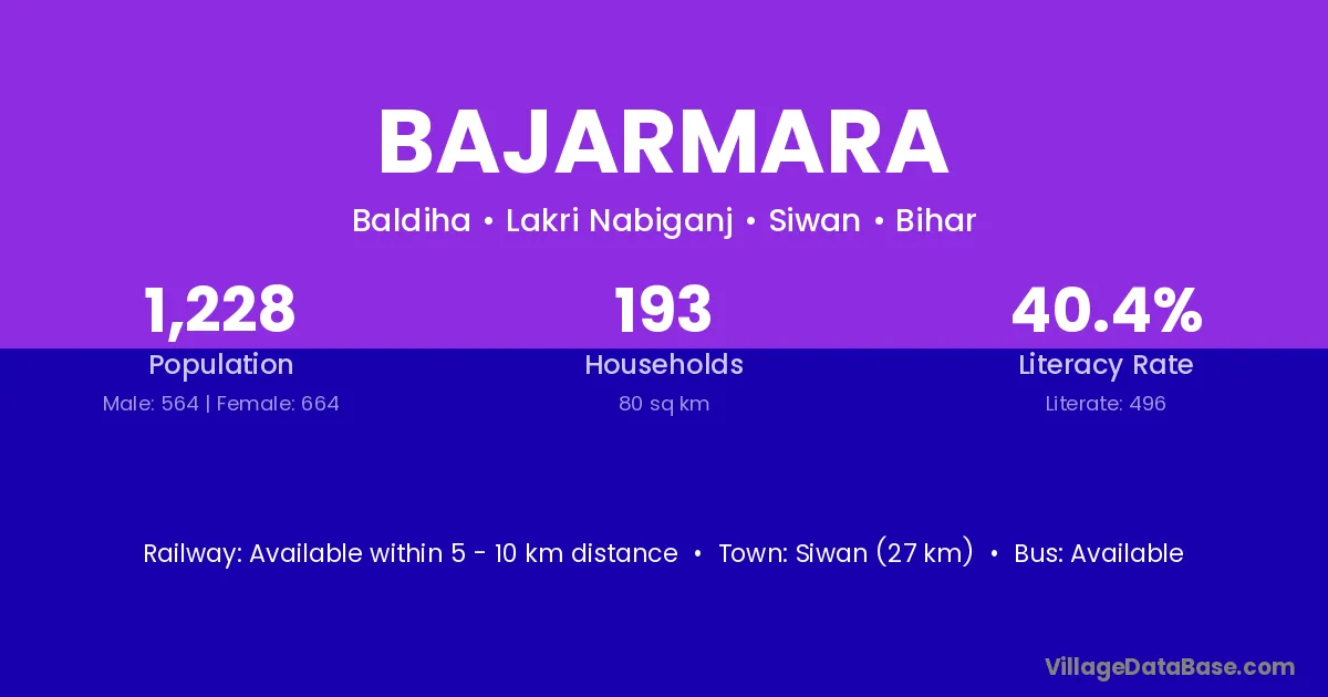 Siwan (27 km) is the nearest town to Bajarmara village for major economic activities and is located approximately 27 km away.