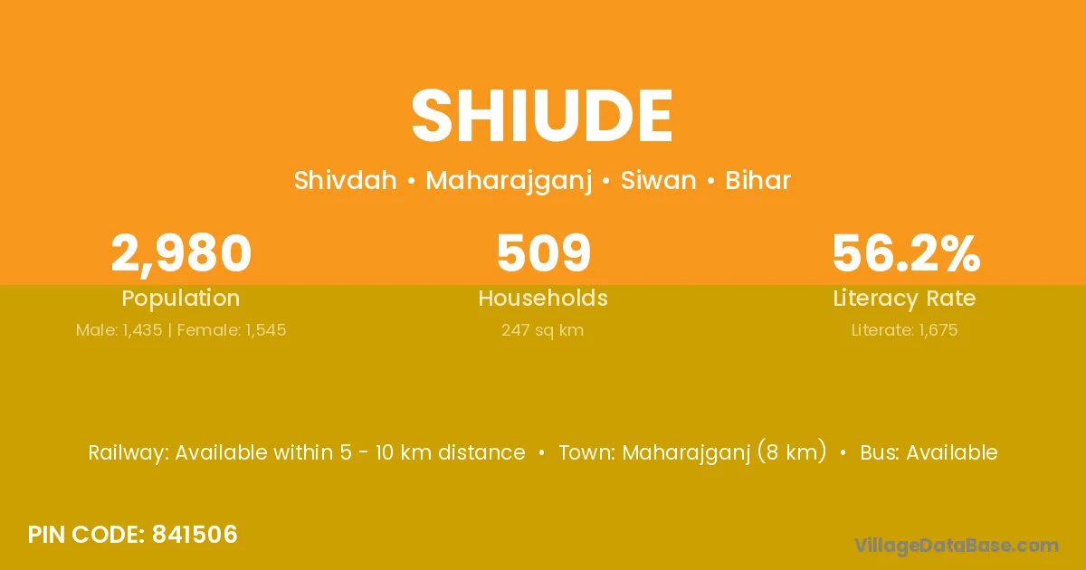 Maharajganj (8 km) is the nearest town to Shiude village for major economic activities and is located approximately 8 km away.