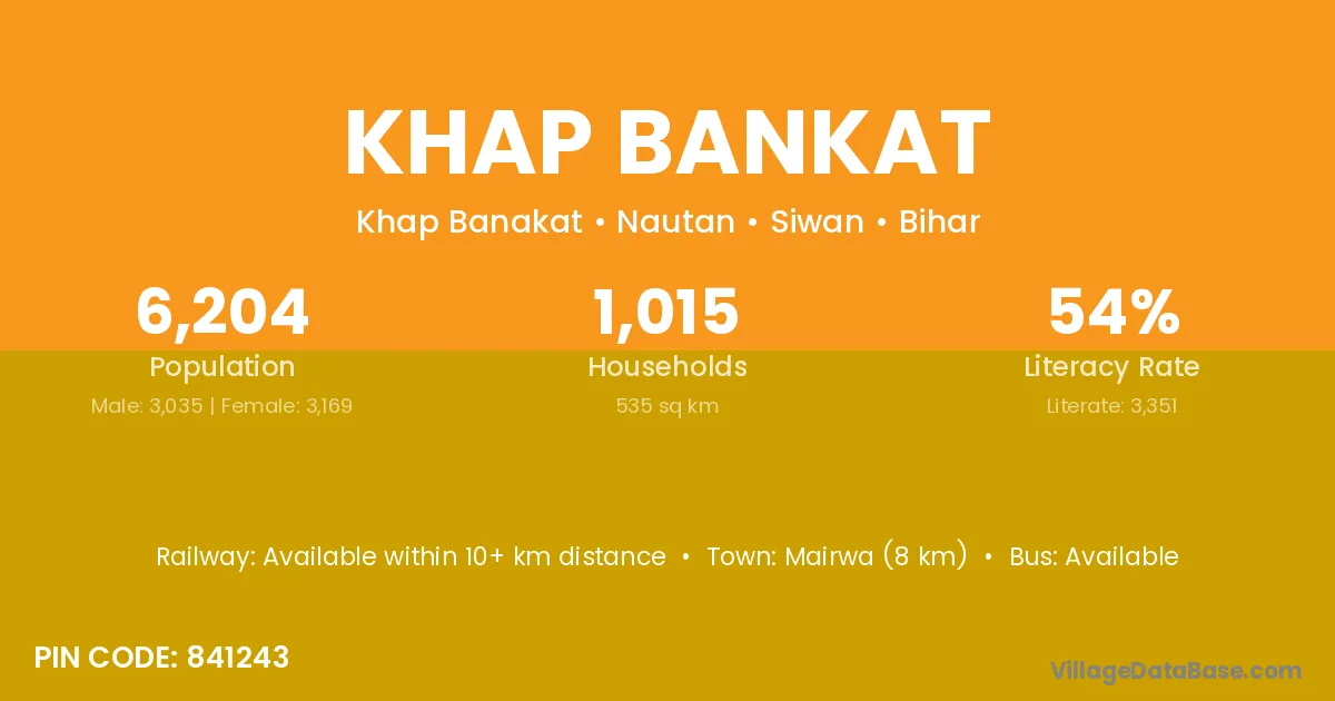 Mairwa (8 km) is the nearest town to Khap Bankat village for major economic activities and is located approximately 8 km away.