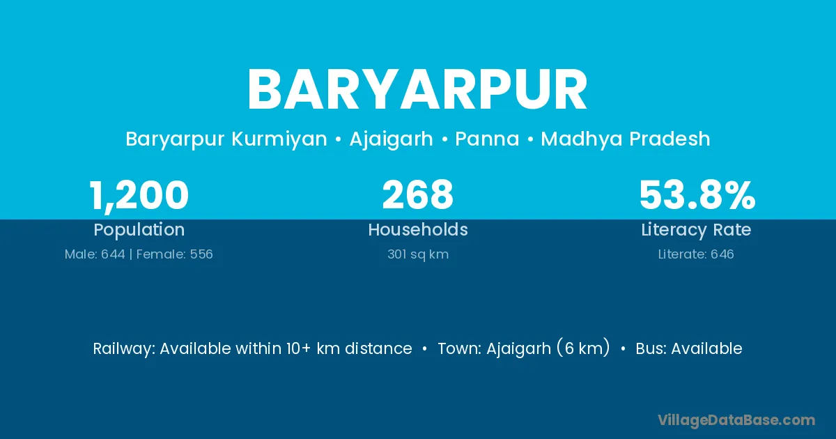 Baryarpur village has a total population of 3,149 people, of which 1,589 are males and 1,560 are females.