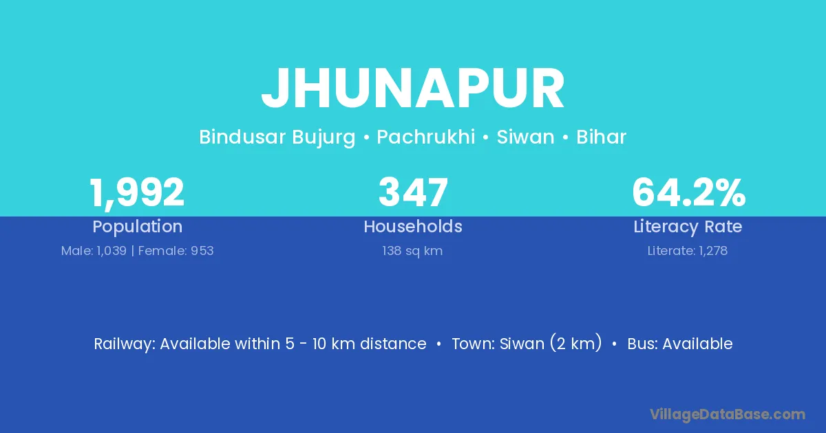 Siwan (2 km) is the nearest town to Jhunapur village for major economic activities and is located approximately 2 km away.