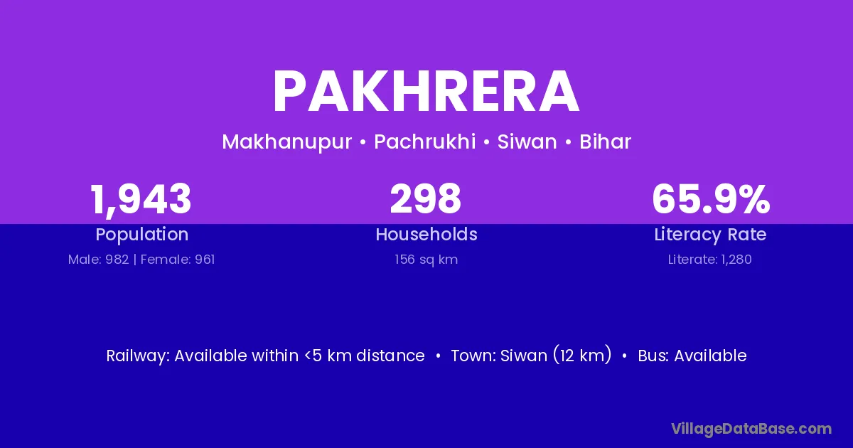 Siwan (12 km) is the nearest town to Pakhrera village for major economic activities and is located approximately 12 km away.
