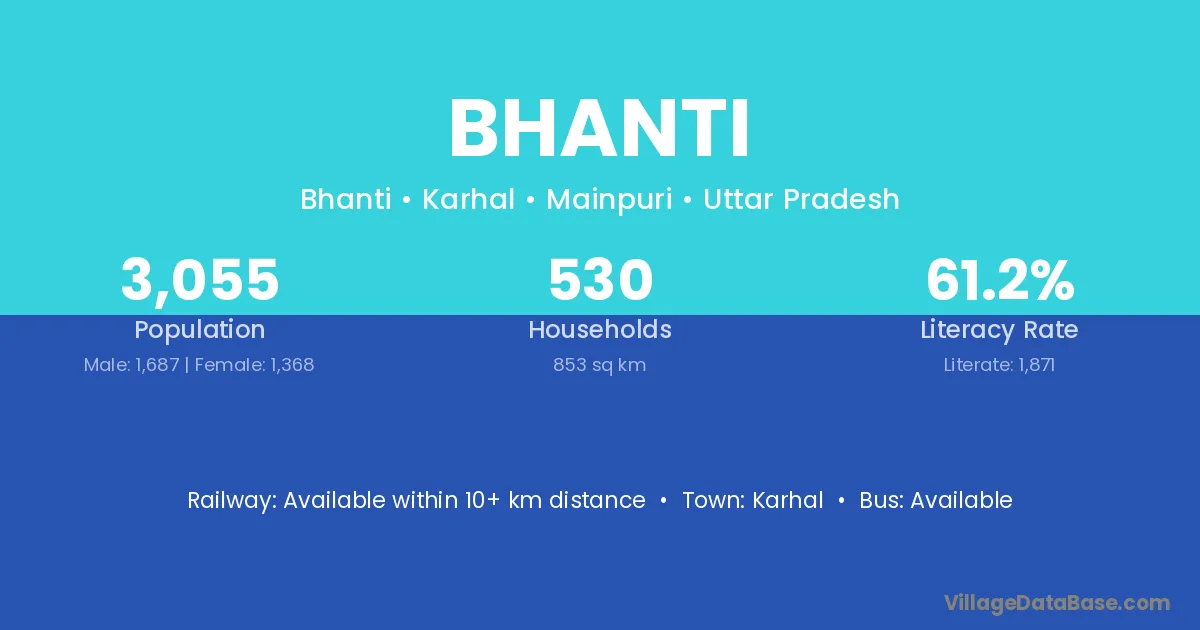 Siwan (30 km) is the nearest town to Bhanti village for major economic activities and is located approximately 30 km away.