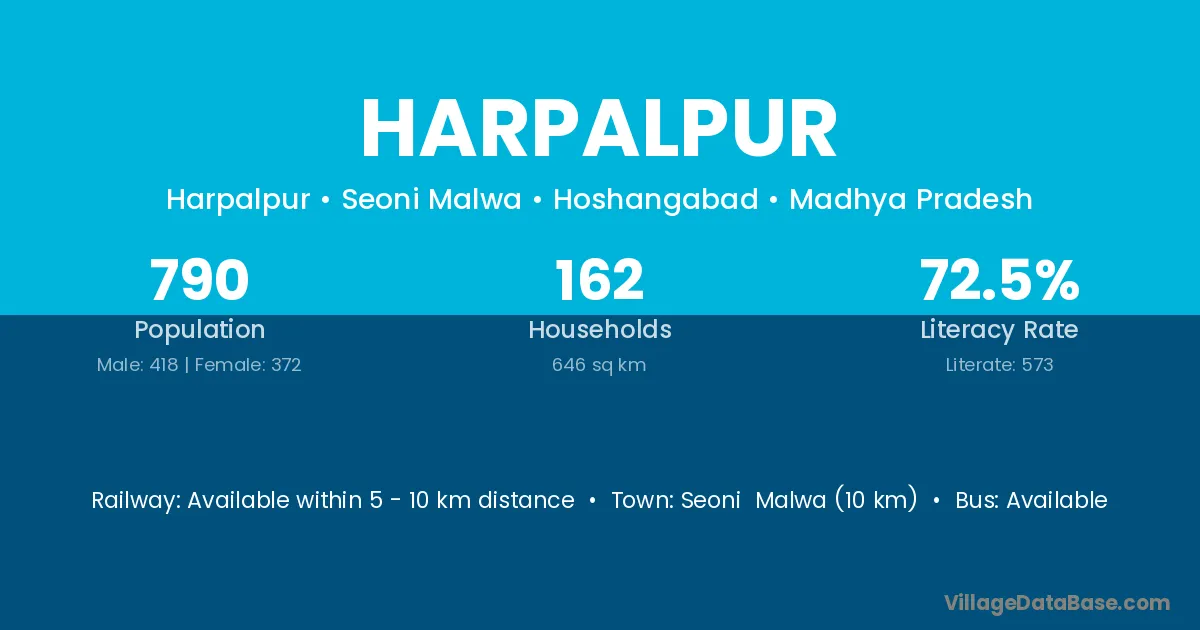 Siwan (18 km) is the nearest town to Harpalpur village for major economic activities and is located approximately 18 km away.