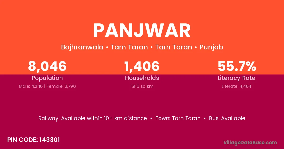 Siwan (35 km) is the nearest town to Panjwar village for major economic activities and is located approximately 35 km away.