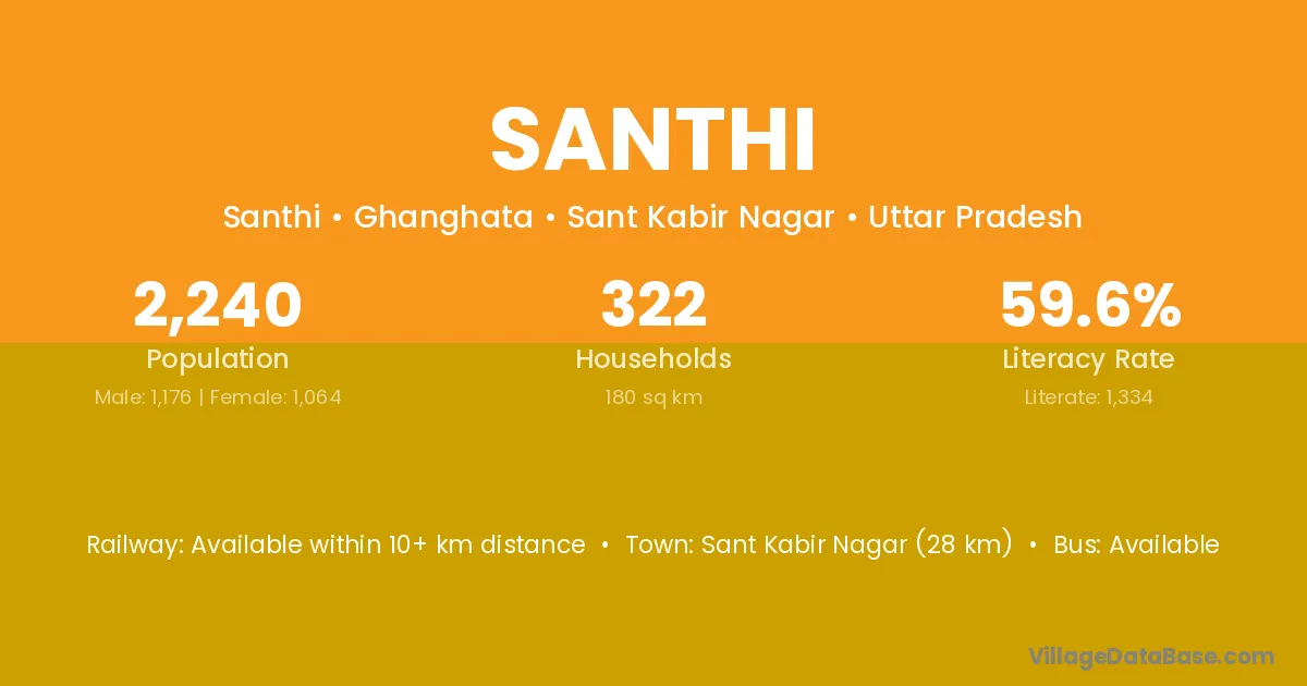 Siwan (40 km) is the nearest town to Santhi village for major economic activities and is located approximately 40 km away.