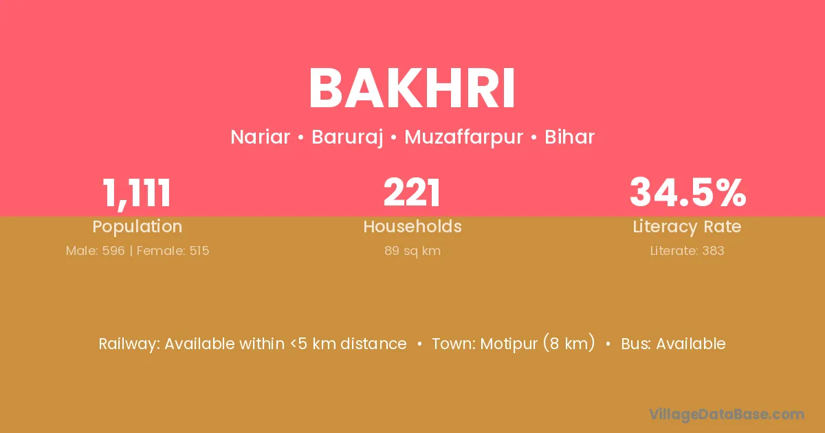Siwan (22 km) is the nearest town to Bakhri village for major economic activities and is located approximately 22 km away.