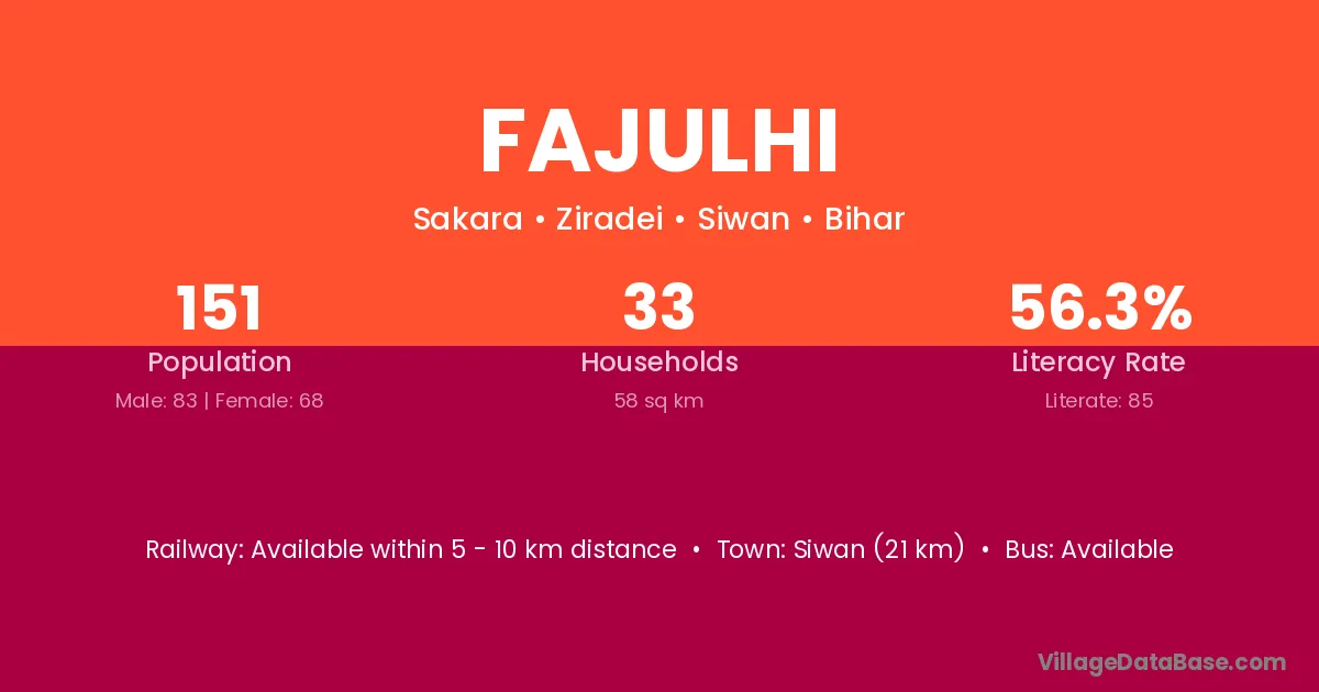 Siwan (21 km) is the nearest town to Fajulhi village for major economic activities and is located approximately 21 km away.