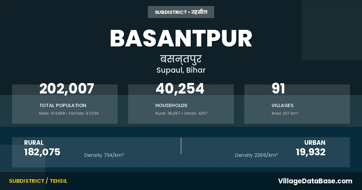 Basantpur is a town and Subdivision in the Supaul district of the Bihar. In India, a Subdivision is a subdivision of a district responsible for the administration and revenue collection of a specific area within the district. Subdivisions play a crucial role in the local governance structure, contributing significantly to the development and administration of their communities.