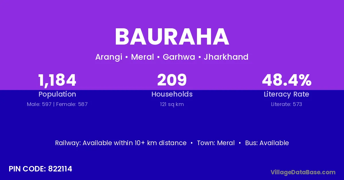 The literacy rate of Bauraha village is 41.32%. Male literacy stands at 49.41% and female literacy at 33.10%.