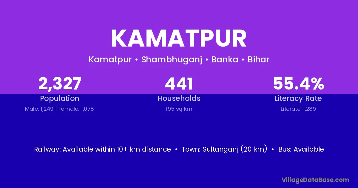 Birpur (15 km) is the nearest town to Kamatpur village for major economic activities and is located approximately 15 km away.