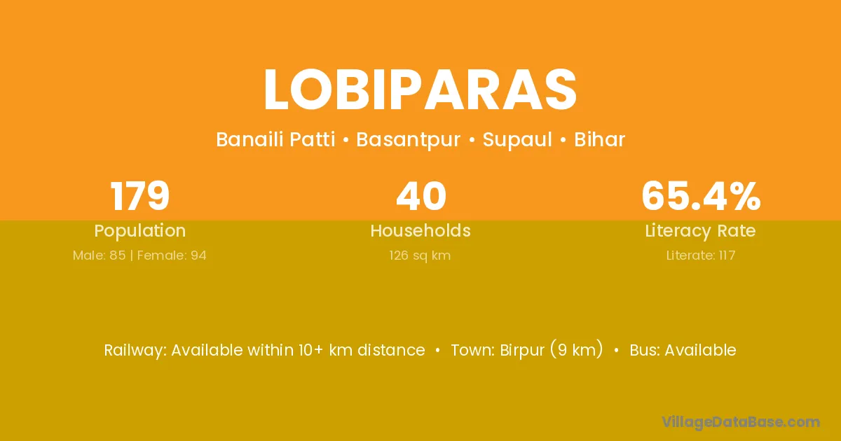 Birpur (9 km) is the nearest town to Lobiparas village for major economic activities and is located approximately 9 km away.