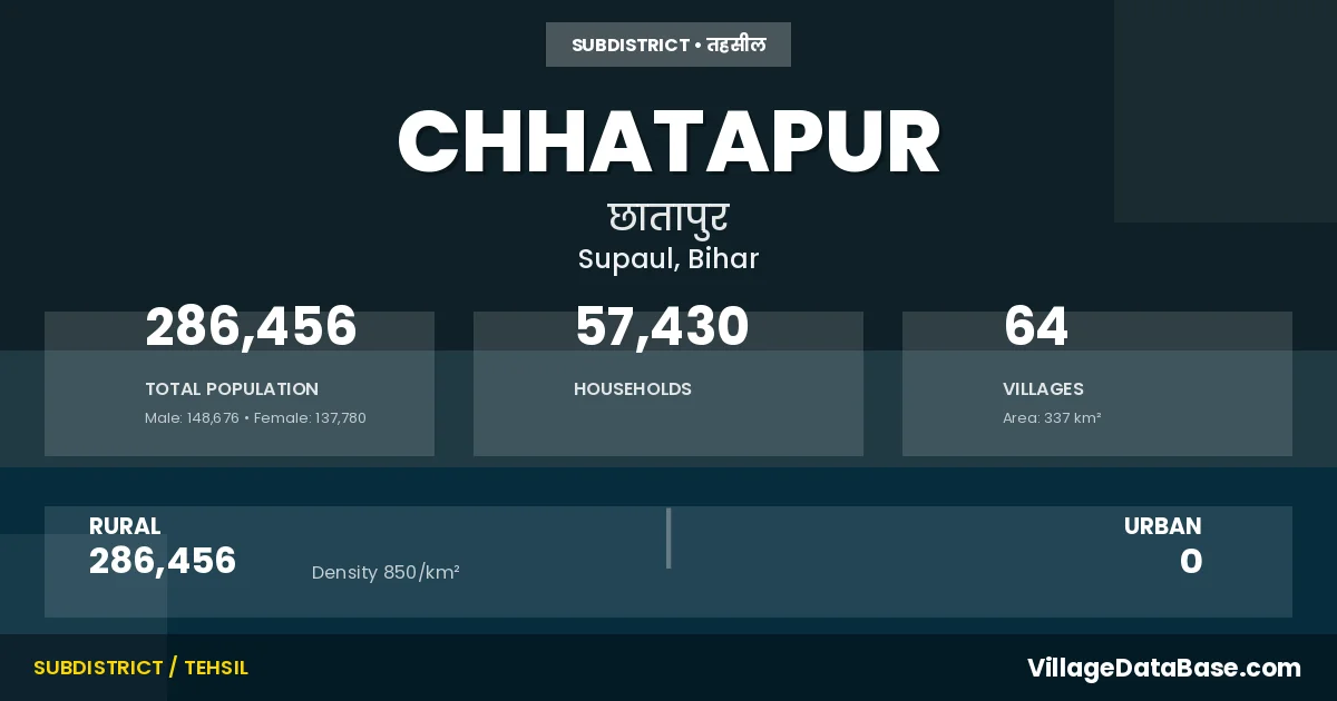 Chhatapur is a town and Subdivision in the Supaul district of the Bihar. In India, a Subdivision is a subdivision of a district responsible for the administration and revenue collection of a specific area within the district. Subdivisions play a crucial role in the local governance structure, contributing significantly to the development and administration of their communities.